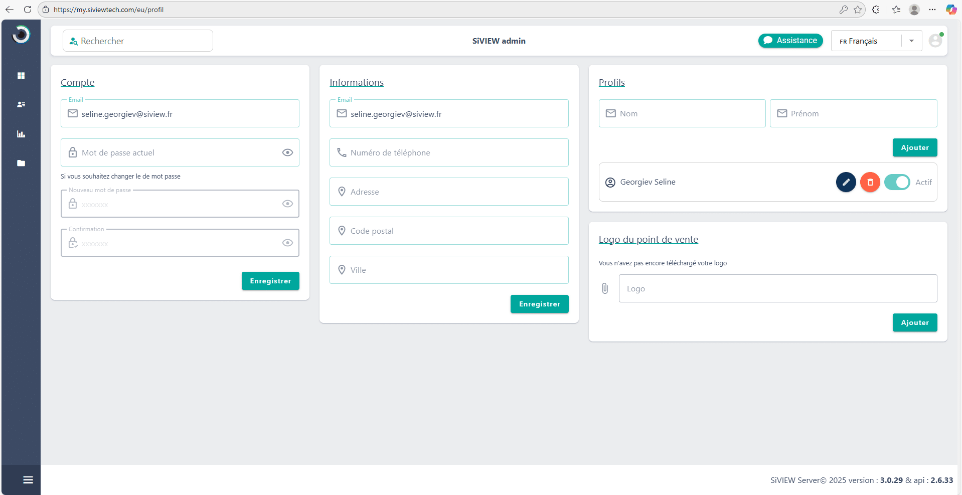 Elle donne accès aux informations de votre point de vente, comme l’adresse e-mail associée au compte, votre adresse, ou le logo de l’établissement.